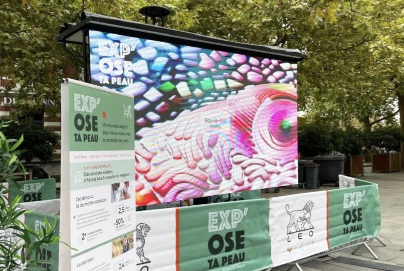 Les maladies de peau restent taboues et peu stigmatisantes, ce qui empêche de nombreux patients d’en parler. Cette campagne visait à ouvrir la discussion en utilisant une approche artistique et interactive, permettant au public d’exprimer son ressenti face à ces pathologies.